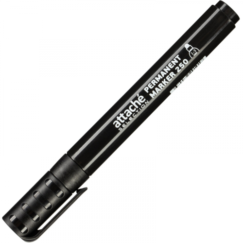 Перманентный маркер Attache Selection отлично подходит для повседневного использования. Предназначен для письма на любой поверхности: бумага, картон, полиэтилен, дерево, стекло, металл, пластик, ткань и т.д. Особая нестираемая основа перманентного маркера Attache Selection обеспечивает устойчивость нанесенных чернил к воздействию воды, ультрафиолета, низким и высоким температурам. Фетровый круглый наконечник с повышенной износостойкостью обеспечивает экономный расход и четкое нанесение. Отличается продленной линией письма. Изделие не перезаправляется. Плотно закрывается колпачком, что предотвращает высыхание наконечника и чернил. Толщина линии письма - 1-3 мм в зависимости от угла наклона. Спиртовая основа обеспечивает моментальное высыхание нанесенных чернил на поверхности. Классическая удобная круглая форма корпуса из пластика. Цвет колпачка соответствует цвету чернил.