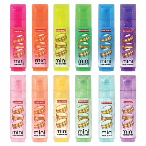 Благодаря особой водной основе чернил текстовыделители не высыхают без колпачка в течение 8 часов. Текстовыделители обладают экономным расходом чернил, при этом длина линии письма достигает 300 метров. Чернила быстро впитываются и тем самым предотвращают размазывание в процессе использования. Цвет колпачка и корпуса соответствует цвету чернил. Необычный колпак с блестками отлично дополняется яркими принтами.