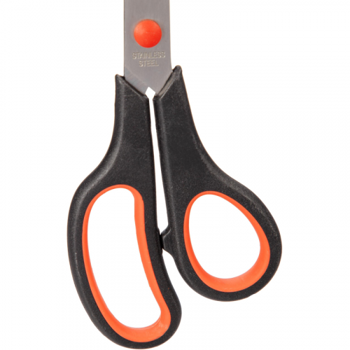 Ножницы для правшей Выбор есть 235 мм пластиковые ручки с резиновыми вставками красного и черного цвета. Универсальные ножницы Выбор есть - это практичный инструмент для решения множества бытовых задач. Особенности изделия: оптимальная длина 235 миллиметров - удобны для большинства видов работ. Универсальность: подходят для резки бумаги, картона, ткани, нитей и других материалов. Прочные лезвия изготовлены из нержавеющей стали, что обеспечивает долговечность и стойкость к коррозии. Двухсторонняя заточка обеспечивает аккуратный и ровный рез. Безопасность: тупоконечные лезвия снижают риск травмирования. Пластиковые ручки красного и черного цветов обеспечивают комфортный хват. Ножницы Выбор есть - надежный помощник дома и в офисе!