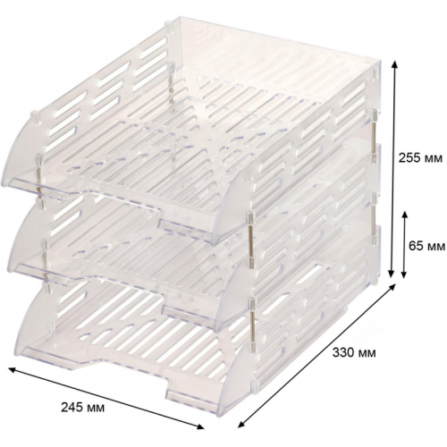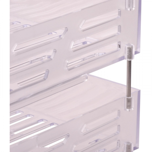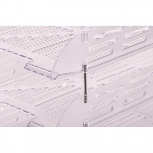Горизонтальный лоток для бумаг выполнен из пластика прозрачного цвета, предназначен для хранения документов и печатной продукции формата А4. Этот лоток освежит рабочий стол благодаря дизайну и яркой палитре. Установка лотков на металические стержни . Изготовлен из полистирола. Цвет: прозрачный. Размеры в сборе (ВхГхШ): 254x330x245 мм. Вес 0,940 кг.
