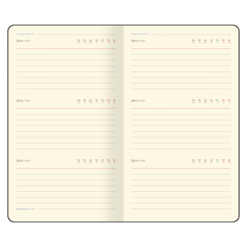Еженедельник недатированный Greenwich Line серии "Floret" поможет оставаться организованным и элегантным. Еженедельник размером 103*176 мм содержит 64 листа высококачественной белой бумаги повышенной плотности 80 г/м2 с пантонной печатью в 2 краски.