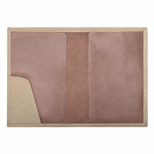 Модель выполнена из натуральной кожи флоттер бежевого цвета, что подчеркнет стиль и изысканный вкус обладателя. На внутреннем развороте расположены 2 кармана из прозрачного пластика, а также дополнительный кожаный карман в виде уголка размером 69х46 мм. Обложка прекрасно подойдет для нанесения штампа или логотипа.