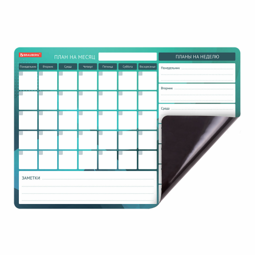 Магнитный планинг BRAUBERG - незаменимый помощник в искусстве тайм-менеджмента. Предназначен для письма маркерами для белых досок и меловыми маркерами. Это гибкая магнитная доска, которая легко крепится к гладким металлическим поверхностям.