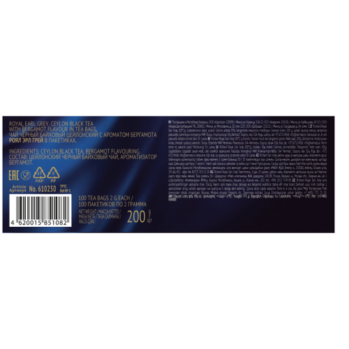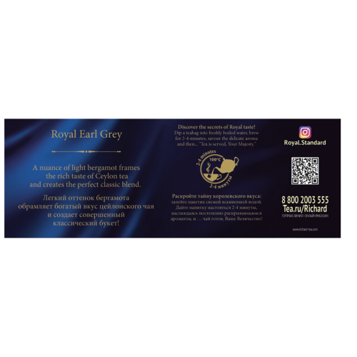 Аристократичность и безупречный вкус - главные отличия особ высшего света и… чая Richard "Earl Grey". Неповторимый букет «Золотого» цейлонского чая с чарующей нотой бергамота и легким цитрусовым шлейфом – фаворит светских раутов.