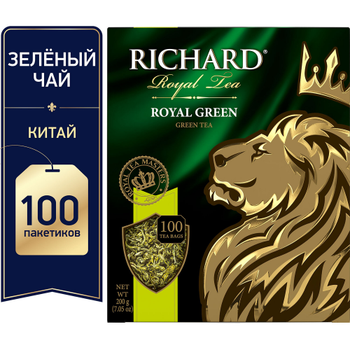 Чай RICHARD (Ричард) "Royal Green", зеленый, 100 пакетиков по 2 г, 610150
