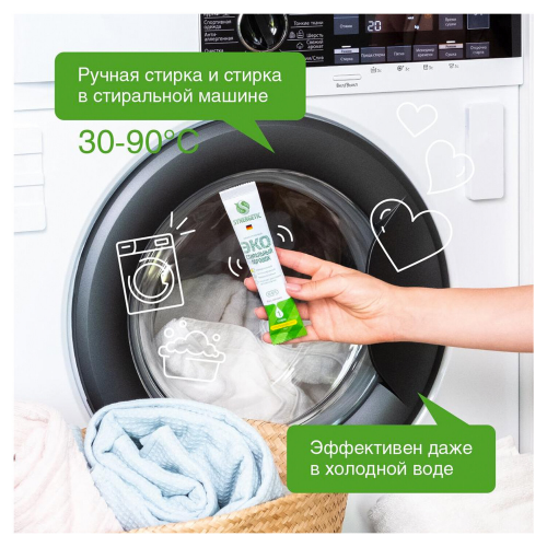 Обычная стирка: 1 стик порошка на 5 кг белья.