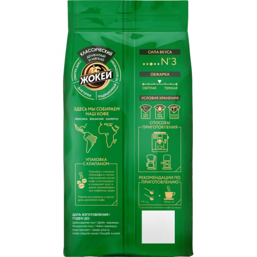 Кофе в зернах Жокей Классический - это купаж лучших сортов 100% арабики из Центральной и Южной Америки, Африки и Индии. Продукт разработан для создания мягкого, изысканного вкуса с богатым ароматом. Он подходит для домашнего и офисного использования, придавая бодрость на протяжении дня. Упакован в вакуумный пакет с клапаном дегазации, что обеспечивает сохранение вкусовых и ароматических качеств, защищая от влаги и кислорода. Рекомендуется хранить в сухом, прохладном месте в плотно закрытом пакете. Состав: 100% арабика. Степень обжарки: средняя. Для одной чашки используйте 2 полные чайные ложки молотого кофе. Рекомендуемая температура воды - 90-95°C. Подходит для приготовления в турке, френч-прессе или кофеварке. Калорийность 100 г продукта - 3 ккал. БЖУ: белки - 0 г, жиры - 0 г, углеводы - 0 г. Произведен в России по стандарту ГОСТ 52088. Кофе Жокей Классический - идеальный выбор для ценителей качественного кофе в премиум-сегменте. Внешний вид и/или характеристики товара могут быть изменены производителем в соответствии с производственным процессом.
