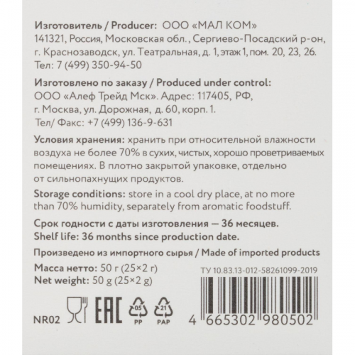 - Чайных пакетиков в упаковке: 25
