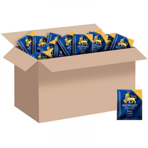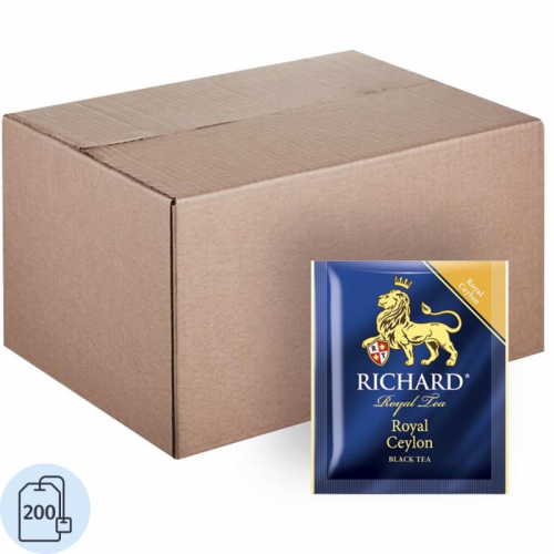 Чай черный Richard Royal Ceylon 200 сашет. Чай Richard Royal Ceylon черный 200 пакетиков - черный пакетированный чай из ассортимента для сегмента HoReCa - сашеты в гофрокоробе по 200 штук. Классический цейлонский черный чай высшего качества с мягкими едва уловимыми сладковатыми нотками.Состав: чай черный байховый цейлонский.Способ приготовления: залейте чайный пакетик горячей воды, дайте чаю настояться 2-3 минуты.Количество пакетиков в упаковке: 200 штук.Тип упаковки: картонная коробка.Условия хранения: хранить в чистом, хорошо вентилируемом помещении без посторонних запахов при относительной влажности воздуха не более 70%.Страна производства: Россия.
