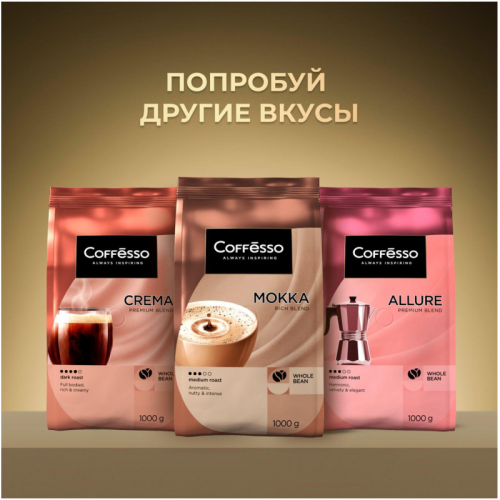Кофе в зернах Coffesso Massimo - премиум кофе из 100% бразильской арабики. Он подходит для приготовления в турке, гейзерной кофеварке, капельной кофеварке и френч-прессе. Состав: 100% арабика. Степень обжарки: средняя. Энергетическая ценность на 100 г продукта: 3 ккал, белки - 0 г, жиры - 0 г, углеводы - 0 г. Кофе упакован в вакуумный пакет с клапаном дегазации, который сохраняет свежесть и аромат зерен. Условия хранения: хранить в сухом помещении при температуре от 5 до 25°C. Рекомендуется молоть кофе перед приготовлением. Оптимальная доза для одной порции - 7-10 г на 100 мл воды, температура воды - 90-95°C. Coffesso Massimo имеет мягкую плотность и длительное послевкусие. Этот кофе станет отличным выбором для тех, кто ценит насыщенный вкус. Внешний вид и/или характеристики товара могут быть изменены производителем в соответствии с производственным процессом.