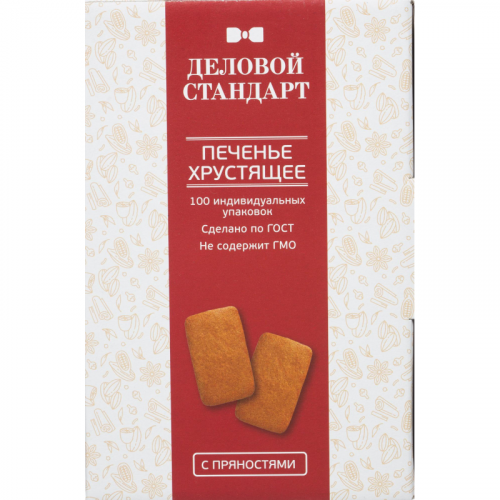 Печенье сдобное Деловой Стандарт с пряностями (100 штук по 4.5 г) Печенье "Деловой Стандарт" - хрустящее печенье, на основе пшеничной муки с добавлением ароматных пряностей. Отлично подойдёт для небольшого перекуса за чайной паузой дома или на работе! Каждое печенье упаковано, поэтому его удобно брать с собой, а также расположить в зонах переговорной, шоу-рума или ресепшн. Хрустящий вкус и пряный ароматный - заряд энергии на целый день. Состав: мука пшеничная хлебопекарная в/с, маргарин (рафинированный дезодорированные масла в натуральном и модифицированном виде (пальмовое масло, подсолнечное масло)), эмульгаторы (Е471, Е475, Е322), соль пищевая, краситель Е160а, регулятор кислотности лимонная кислота, сахар белый кристаллический, вода питьевая, инвертный сахарный сироп, агент влагоудерживающий пропиленгликоль Е1520, консерванты Е260, Е262(1), Е281, ароматизатор натуральный (лимон), сода пищевая, сухой яичный белок, загуститель Е466, регулятор кислотности Е330, пряности (корица, кориандр, кардамон, мускатный орех, гвоздика, бадьян, перец душистый). Содержит соевый лецитин. Продукт не является ГМО, не содержит и не был изготовлен из генетически модифицированных организмов. Пищевая ценность в 100 г продукта: белки - 6 г, углеводы - 62 г, жиры - 27 г. Энергетическая ценность: 515 ккал/2155 кДж. Соответствует требования ТР ТС 021/2011 "О безопасности пищевой продукции", ГОСТ 24901-2014. Масса нетто: 450 г. Хранить при температуре не более (18+5) C, относительной влажности не более 75%. Срок годности: 6 месяцев. Страна производства: Россия.