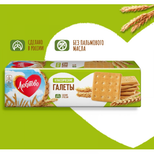 Печенье затяжное Любятово Галеты классические 185 г Постные галеты "Классические" легко утоляют голод и хороши в любых сочетаниях: с сыром, джемом, мёдом или просто с чаем. Это прекрасная альтернатива традиционным продуктам для завтрака для тех, кто любит полезную еду и предпочитает более лёгкие продукты. Состав: мука пшеничная, сахар, соль, разрыхлители: гидрокарбонат аммония (соль углеаммонийная), гидрокарбонат натрия (сода пищевая); дрожжи хлебопекарные, регулятор кислотности: лимонная кислота, антиокислитель: пиросульфит натрия. Пищевая ценность в 100 г: белки - 11 г, жиры - 1 г, углеводы - 76 г. Энергетическая ценность в 100 г: 360 ккал/1540 кДж. Вес: 185 г. Хранить в сухом прохладном месте, с относительной влажностью воздуха не более 75%, при температуре от 15 до 21 С. Срок хранения: 9 месяцев. Страна производства: Россия.