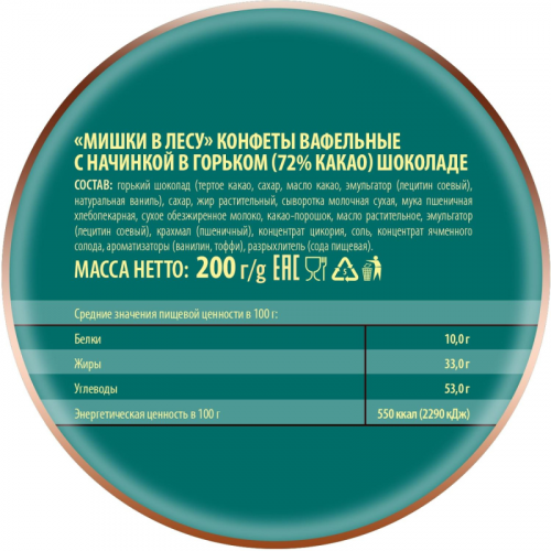 Мягкая молочно-шоколадная начинка с хрустящей вафлей и карамелью в горьком шоколаде 72%. Новое прочтение традиционной рецептуры раскрывает богатство композиции и придает оригинальность вкусовым оттенкам. Состав: горький шоколад (тертое какао, сахар, масло какао, эмульгатор (лецитин соевый), натуральная ваниль), сахар, жир растительный, сыворотка молочная сухая, мука пшеничная хлебопекарная, сухое обезжиренное молоко, какао-порошок, масло растительное, эмульгатор (лецитин соевый), крахмал (пшеничный), концентрат цикория, соль, концентрат ячменного солода, ароматизаторы (ванилин, тоффи), разрыхлитель гидрокарбонат натрия (сода пищевая). Пищевая ценность: белки - 10 г, жиры - 33 г, углеводы - 53 г. Энергетическая ценность: 550 ккал. Срок годности: 12 месяцев. Хранить при температуре 18+/-3°C и относительно влажности воздуха не более 75%. Избегать воздействия прямых солнечных лучей. Страна производства: Россия.