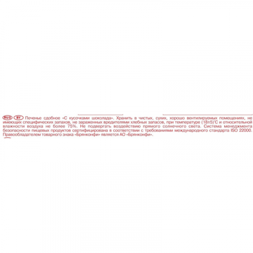 Печенье сдобное Брянконфи с кусочками шоколада 170 г Классическое сдобное печенье, приготовленное из ванильного теста с добавлением кусочков шоколада, в яркой, красочной упаковке - это идеальный выбор для сладкого перекуса. Нежное и ароматное, оно отлично сочетается с чаем или кофе, добавляя каплю удовольствия в ваш день. Состав: мука пшеничная, маргарин (рафинированные дезодорированные растительные масла в натуральном модифицированном виде, вода питьевая, эмульгаторы (Е471, Е475), соль, ароматизатор "сливки-молоко", краситель Каротины, регулятор кислотности лимонная кислота), сахар, вода питьевая, шоколадная масса (сахар, тёртое ка эмульгатор лецитин соевый, ароматизатор ванилин), инвертный сироп (сахар, регулятор кислотности: гидрокарбонат натрия (сода пищевая), лимонная кислота), сыворотка молочная сухая, разрыхлители: карбонат аммония, гидрокарбонат натрия (сода пищевая), соль, эмульгатор лецитин соевый, ароматизатор "Ваниль". Пищевая ценность в 100 г: белки - 6,0 г, жиры - 22,0 г, углеводы - 63,0 г. Энергетическая ценность: 480 ккал. ГОСТ 24901-2014. Масса нетто: 170 г. Хранить в чистых, сухих, хорошо вентилируемых помещениях, не имеющих специфических запахов, не заражённых вредителями хлебных запасов, при температуре (18+5) С и относительной важности воздуха не более 75%. Срок годности: 6 месяцев. Страна производства: Россия.