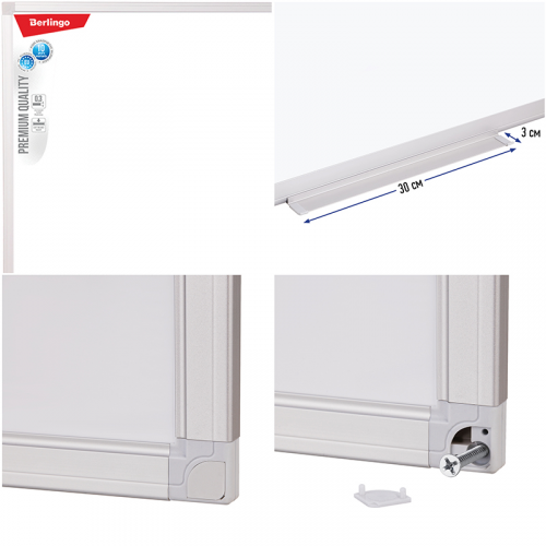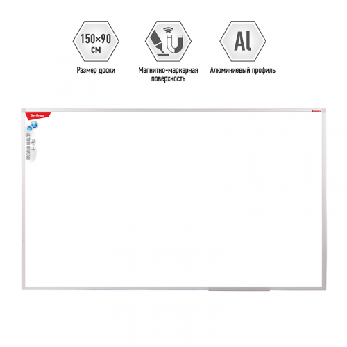 Доска магнитно-маркерная Berlingo Premium качества, 90*150 мм. Увеличеннная толщина магнитно-маркерной поверхности, ДВП основа. Полочка для аксессуаров и комплект креплений - в комплекте. Индивидульно упакована в пленку, в коробке - 1 штука. Гарантия на магнитно-маркерную поверхность - 10 лет.