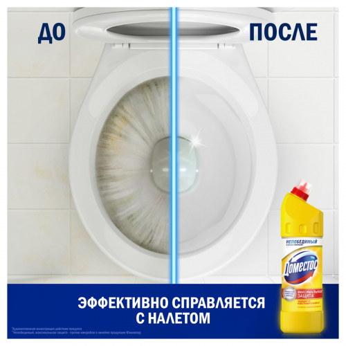 Чистящий гель для унитаза Доместос Лимонная Свежесть помогает обеспечивать в доме блестящую чистоту и защиту от микробов надолго.
