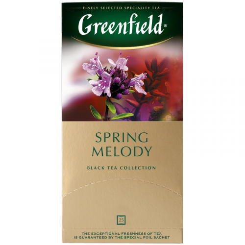 В композиции Greenfield Spring Melody, составленной из дорогого индийского чая, мяты и смородиновых листьев, хорошо ощущается вкус чабреца – свежий, пряный и насыщенной.