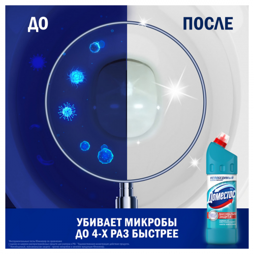 Чистящий гель для унитаза Доместос Свежесть Атлантики помогает обеспечивать в доме блестящую чистоту и защиту от микробов надолго.