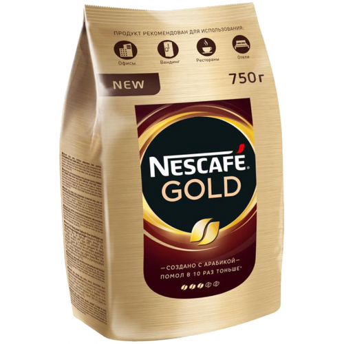 Кофе растворимый Nescafe "Gold", сублимированный, с молотым, тонкий помол, мягкая упаковка, 750г
