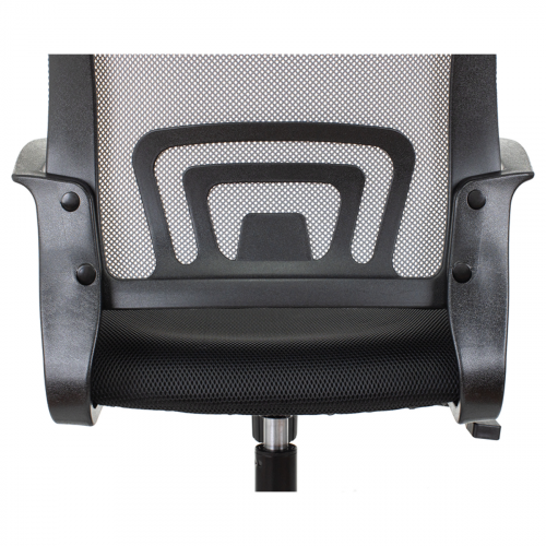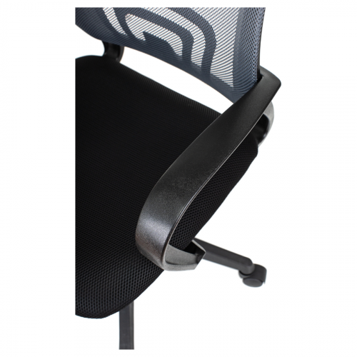 Максимальная нагрузка составляет 150 кг. Газпатрон 3 класса по стандарту Germany DIN 4550. Каркас – немонолитный, материал набивки – поролон, крестовина – пластиковая, подлокотники тоже изготовлены из пластика. Спинка из сетчатого акрила серого цвета подстраивается под физиологические изгибы спины. Сиденье выполнено из ткани чёрного цвета. Присутствует механизм регулировки кресла по высоте. Гарантийный срок – 3 года. Кресло поставляется в картонной коробке в разобранном виде.