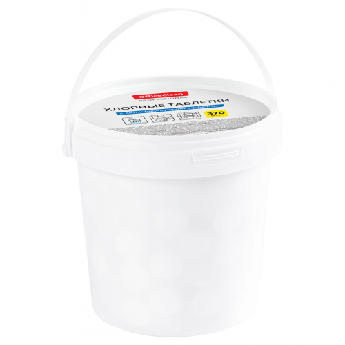 Хлорные таблетки OfficeClean Professional с дезинфицирующим эффектом – отличное решение для уборки. Таблетки упакованы в пластиковое ведро в количестве 370 штук. Вес – 2,7 ± 0,15 г.
