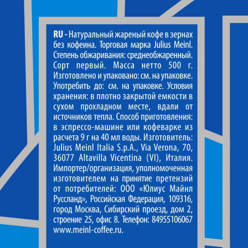 Кофе в зернах Julius Meinl Decaf - это идеальный выбор для тех, кто ценит вкус кофе, но избегает кофеина. Декофеинизация осуществляется углекислотным методом, который сохраняет все вкусоароматические свойства зерен. Этот процесс позволяет удалить до 98% кофеина, при этом кофе остается насыщенным и ароматным. Он подходит для употребления в любое время суток, в том числе на ночь, и идеально подходит для приготовления как в кофемашине, так и в турке. Кофе имеет мягкий и сладкий вкус с легкой сбалансированной кислинкой, сохраняющей приятное послевкусие. Средняя обжарка подчеркивает насыщенность и глубину вкуса. Состав: арабика и робуста. Энергетическая ценность: на 100 г - 1 ккал. Рекомендованный способ приготовления: после помола кофе можно готовить любым способом, подбирая степень помола в зависимости от метода приготовления. Условия хранения: хранить при температуре не выше 27°C и относительной влажности не более 75%. Вскрытую упаковку хранить плотно закрытой в сухом прохладном месте. Стандарт производства: система менеджмента безопасности пищевой продукции соответствует международному стандарту ISO 22000. Внешний вид и/или характеристики товара могут быть изменены производителем в соответствии с производственным процессом.