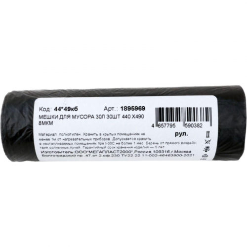 Мешки для мусора 30л 30шт 440 x490 8мкм