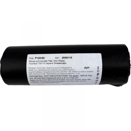 Мешки для мусора ПВД 120л 50мкм 10шт/рул...