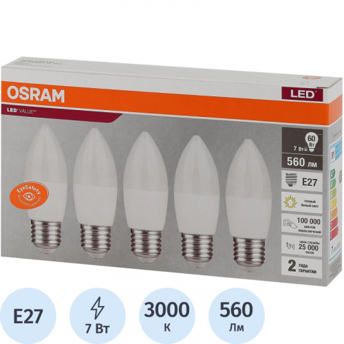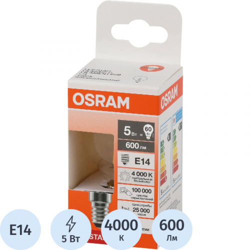 Лампа светодиодная Osram 5/6Вт Е27(Р, 27...