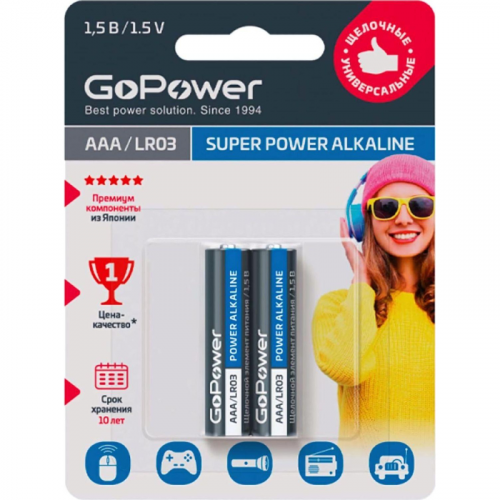 Батарейка GoPower LR03 AAA 2шт/бл Alkali...