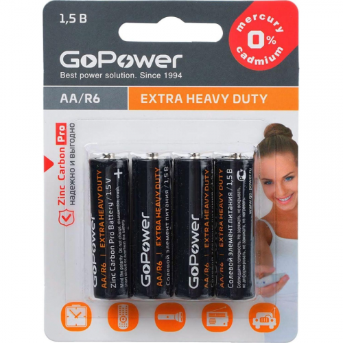 Батарейка GoPower R6 AA 4шт/бл Heavy Dut...