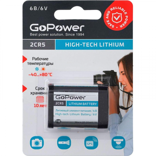 Батарейка GoPower 2CR5 1шт Lithium 6V (6...