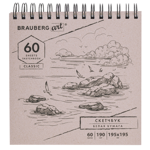 Скетчбук, белая бумага 190 г/м2, 195х195...