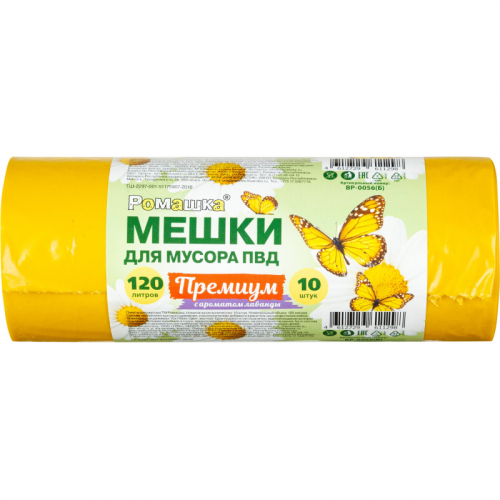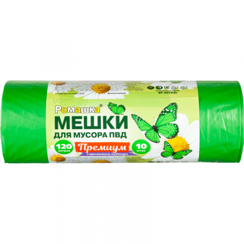 Мешки для мусора ПВД 120л 35мкм 10шт/рул...